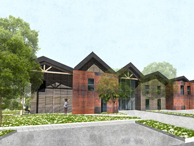 Conçu dans un objectif de performance énergétique et carbone, cette opération conjugue conception passive, production d’électricité sur site et renaturation des espaces extérieure par la création d’une forêt à croissance rapide.