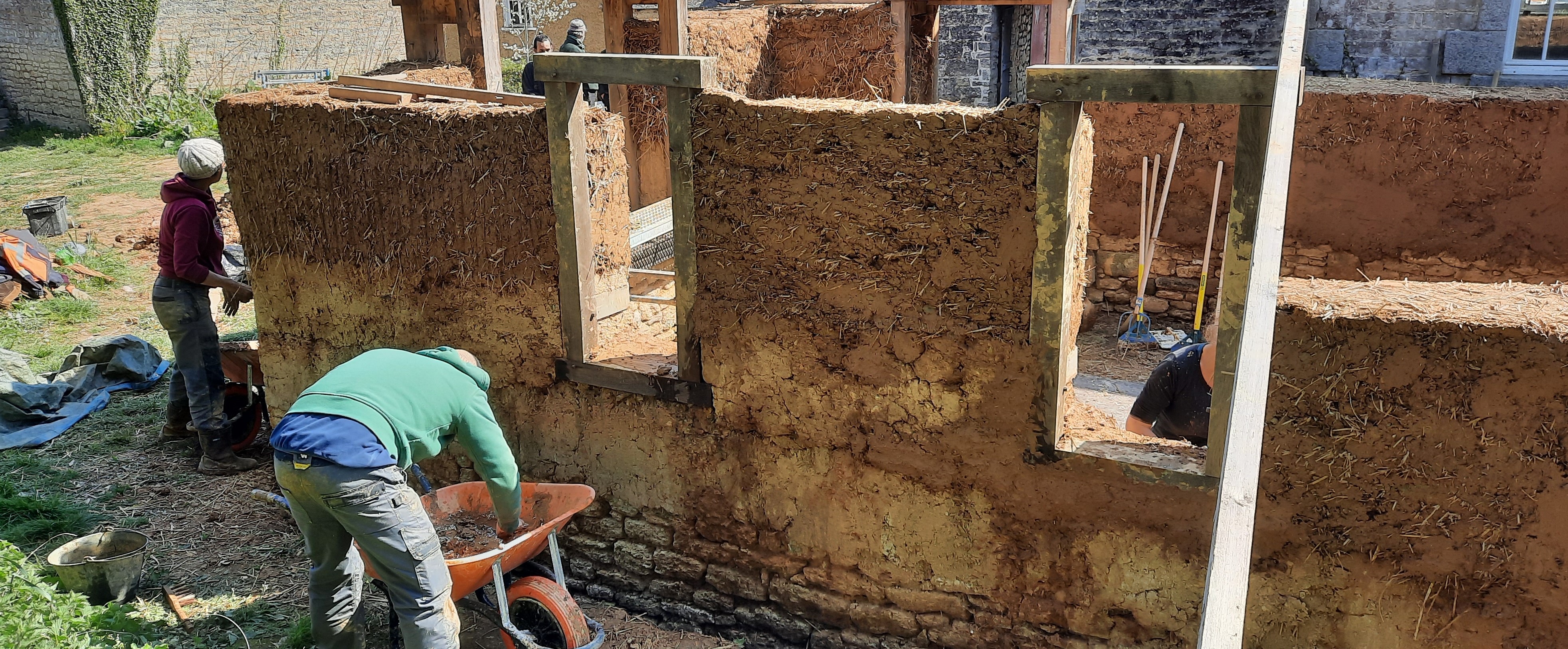 Visite d’une maison conçue en bois, terre, paille à Quévert
